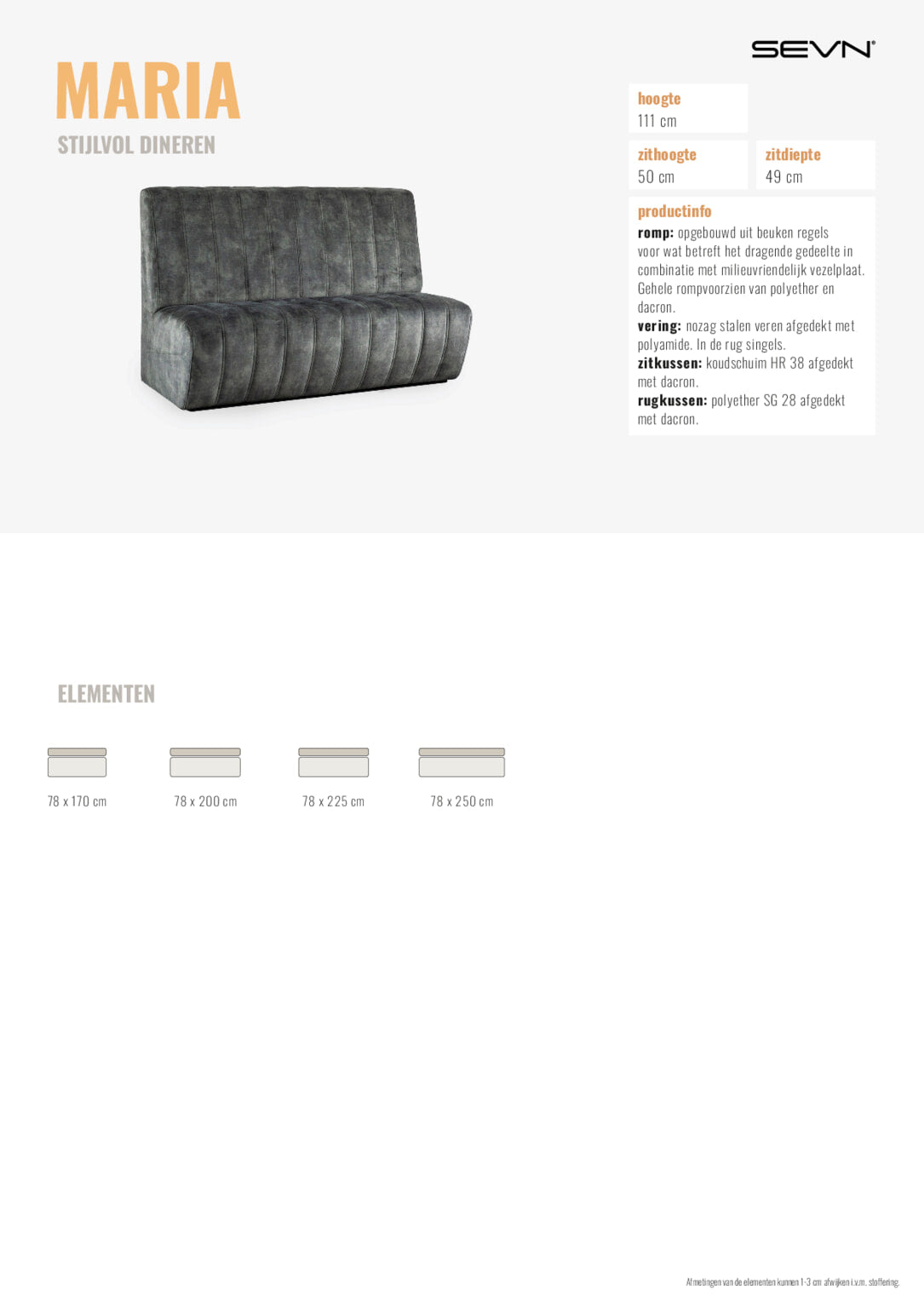 Maria is volledig naar jouw smaak samen te stellen. In onze Concept Store adviseren we je graag persoonlijk en kun je alle SEVN-modellen bekijken en testen.