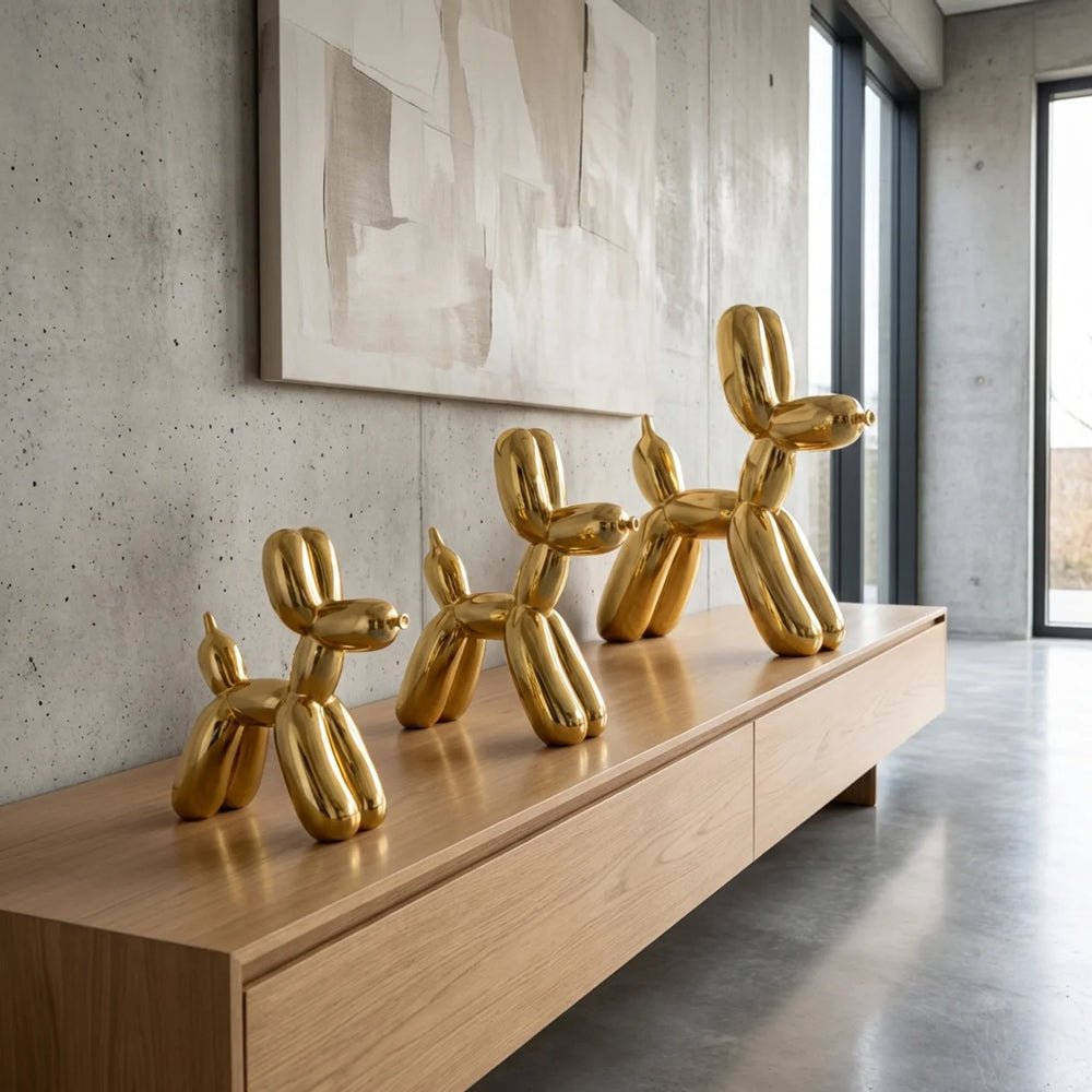 Balloon Hond Set van 3 Chroom – Hoogglans Design Beeld