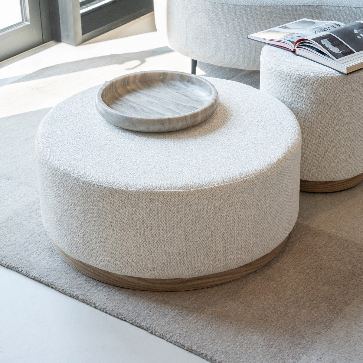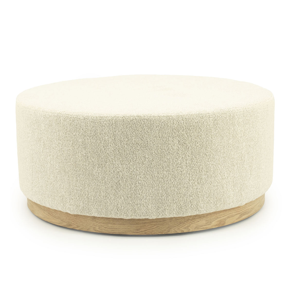 Poef Avah – stof & dennenhout fineer beige mantz large