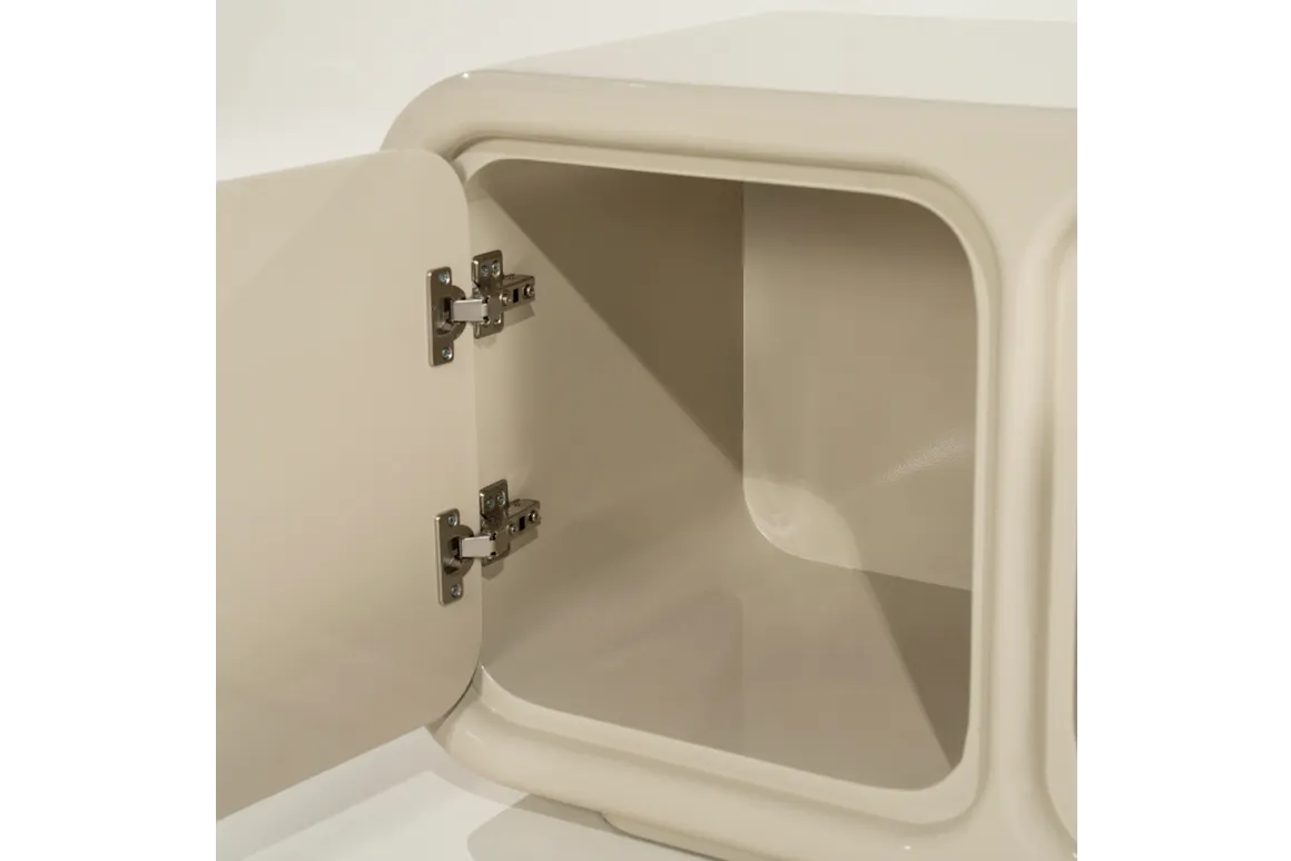 Het meubel biedt voldoende ruimte voor je tv, accessoires en decoratie-items. De gesloten elementen zorgen ervoor dat je kabels en apparatuur netjes uit het zicht blijven — voor een strak en opgeruimd geheel.