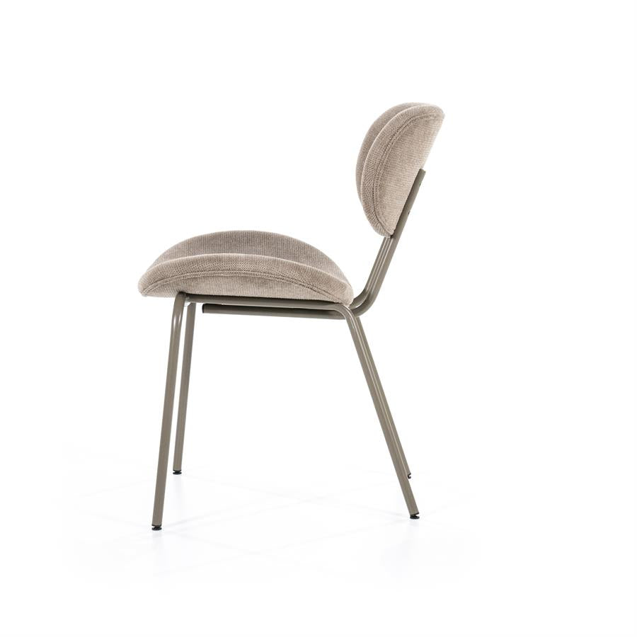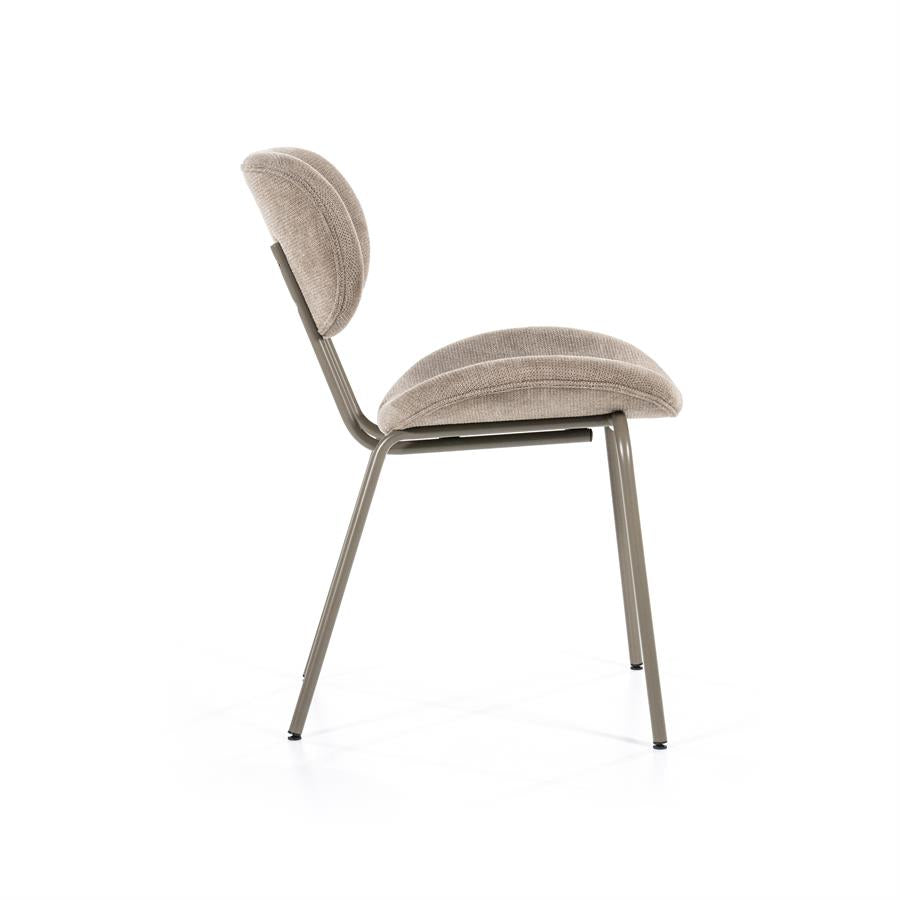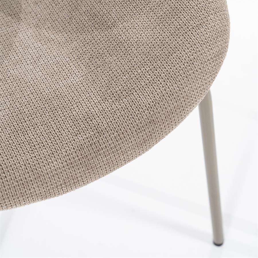 Eetkamerstoel Venus van By-Boo combineert elegant design met ultiem comfort. Uitgevoerd in een warme bruine stof en voorzien van een verfijnde vormgeving, voegt deze stoel direct sfeer toe aan je eetkamer of werkplek. De zachte bekleding en vloeiende lijnen zorgen voor een luxe uitstraling en een heerlijke zitervaring.