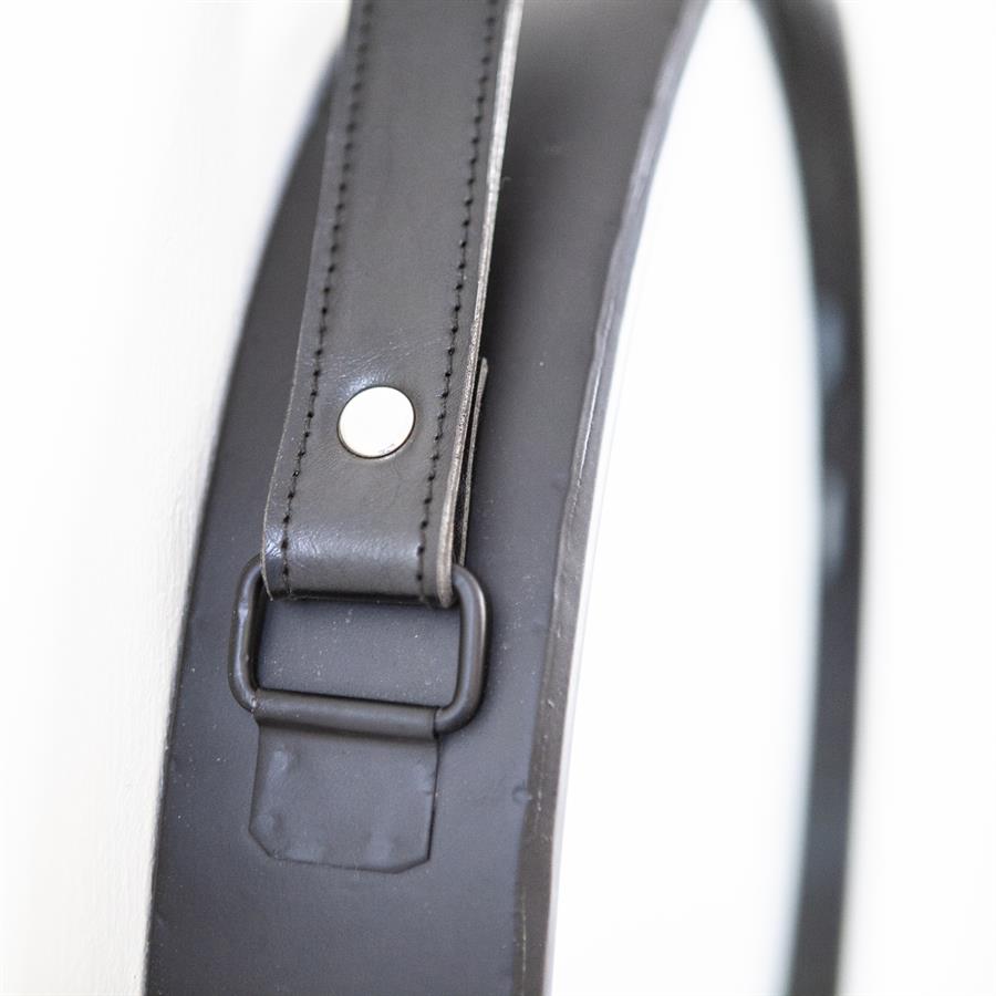 De By-Boo Spiegel Flection is een stijlvolle ronde spiegel die een industrieel tintje toevoegt aan elk interieur. Met zijn zwarte metalen frame en ophangband van zwart leer combineert deze spiegel functionaliteit met een stoer design.