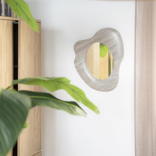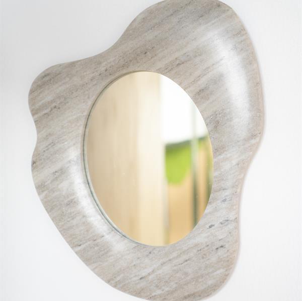 De By-Boo Spiegel Muna is een elegante wandspiegel die functionaliteit en kunstzinnigheid combineert. Met zijn organische vorm en vervaardigd uit hoogwaardig marmer, voegt deze spiegel een vleugje luxe toe aan elk interieur.