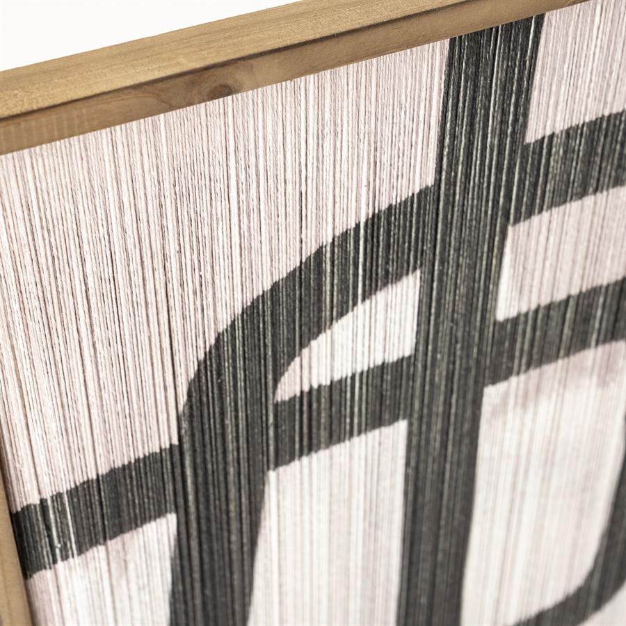 De combinatie van texturen, lijnen en vormen maakt deze wanddecoratie tot een waar kunstwerk.