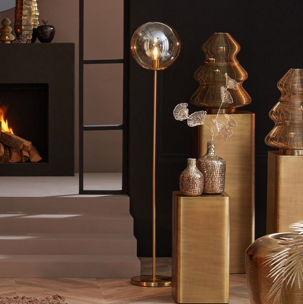 Light & Living Vloerlamp Mayson Driepoot Glas Goud 146cm