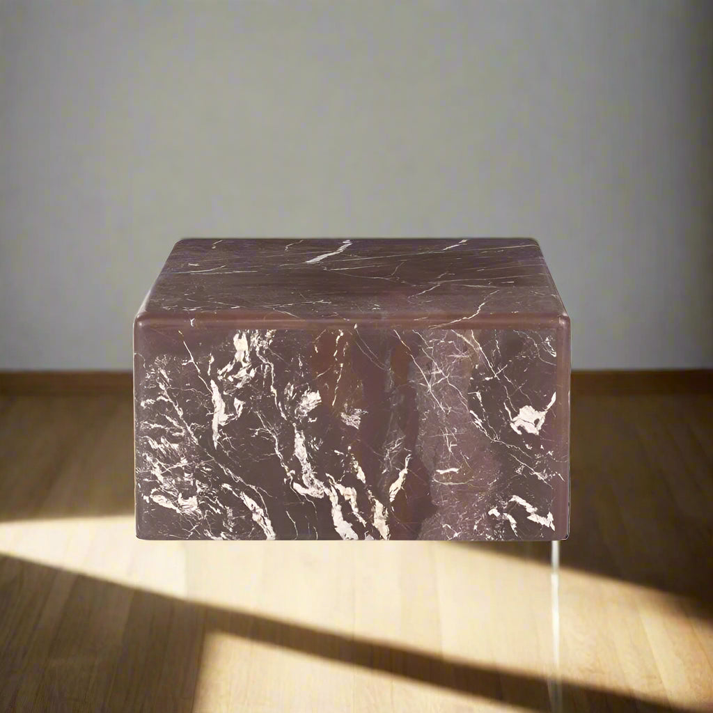 De By-Boo Salontafel Dice – rood is een uitgesproken statement piece dat luxe en karakter toevoegt aan je woonkamer. Met zijn vierkante vorm en rijke rode marmeren afwerking past deze tafel perfect in zowel moderne als hotel chique interieurs. Het natuurlijke marmer zorgt ervoor dat elk exemplaar uniek is, met subtiele variaties in kleur en patroon. Gemaakt van massief marmer voor een duurzame en luxe uitstraling.