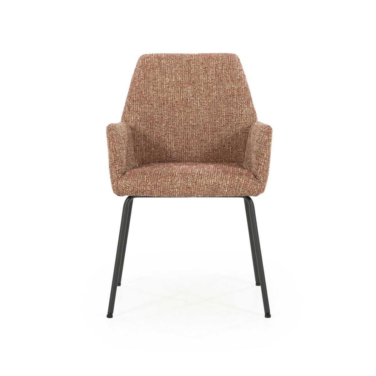 De stoel Indy is een comfortabele stoel met een zitting van stof en een onderstel van gecoat metaal. De rode kleur van de zitting geeft de stoel een opvallende en moderne uitstraling. De stoel is geschikt voor gebruik aan de eettafel of in een werkkamer.