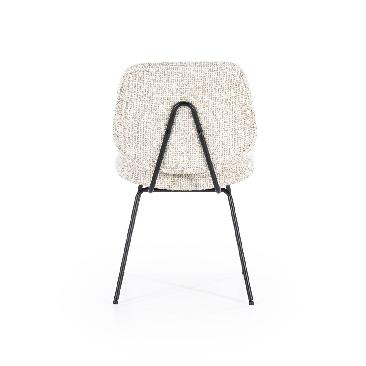 De stoel Jon is een compacte stoel met een zitting van stof en een frame van metaal. De beige kleur geeft de stoel een lichte en neutrale uitstraling. Door het formaat is de stoel geschikt voor gebruik aan de eettafel of in een werkkamer.