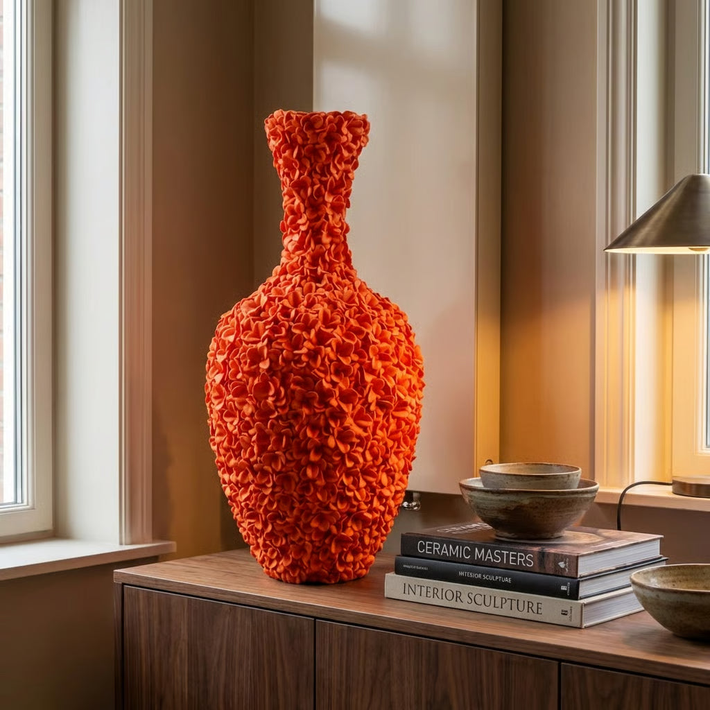 Oranje Design Vaas 80 cm – Grote Decoratieve Vaas voor Interieur