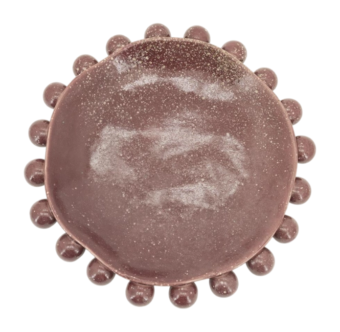 Bowl Viro - burgundy By-Boo Ontdek de By-Boo schaal Viro, een stijlvolle accessoire gemaakt van geglazuurd aardewerk. Verkrijgbaar in de kleuren blauw, mosterd en burgundy, heeft deze schaal een uniek ontwerp met ronde bolvormige details aan de rand. Met zijn eigentijdse uitstraling en afmetingen van 35,5 x 35,5 x 9 cm is Viro perfect voor decoratieve doeleinden in zowel moderne als klassieke interieurs.