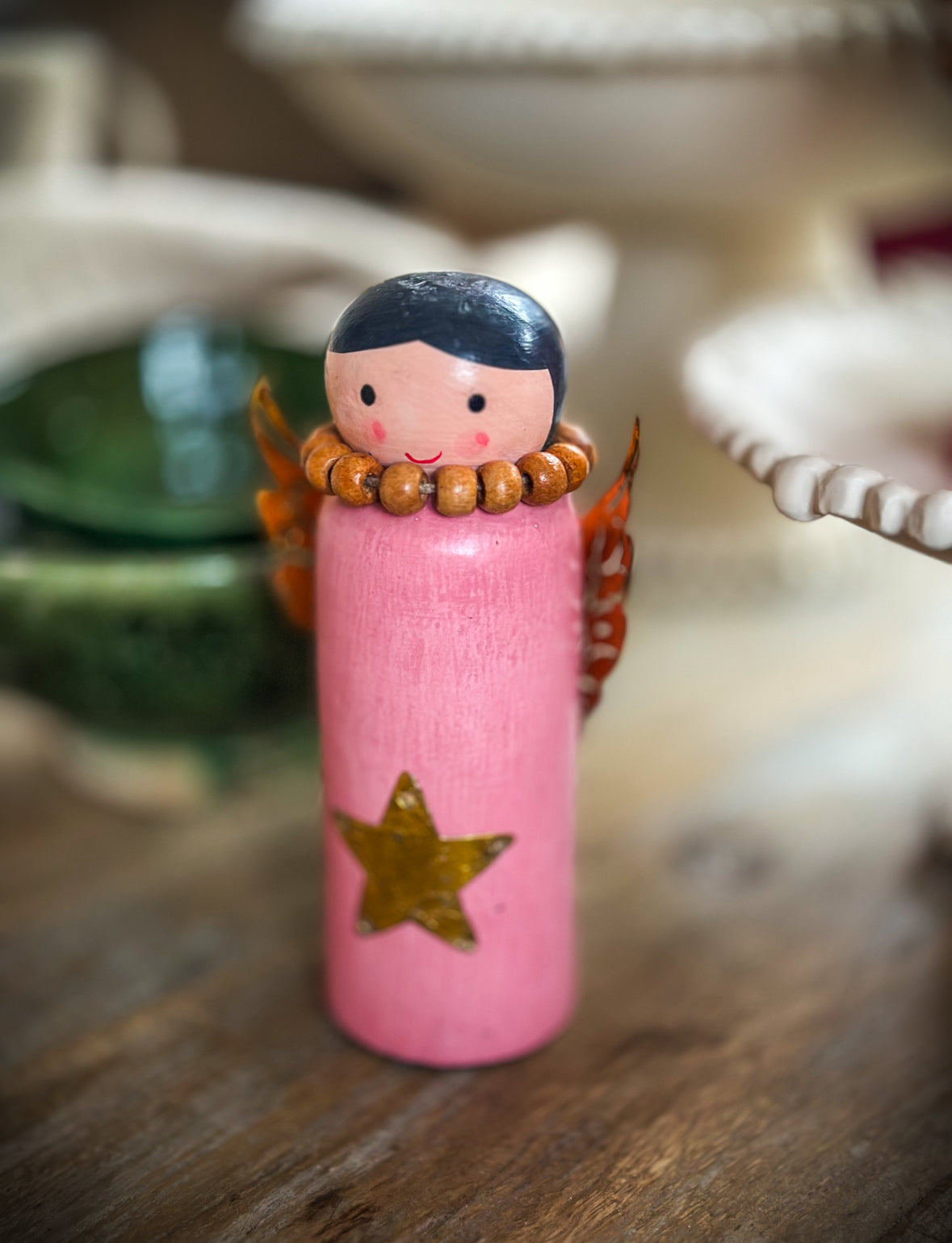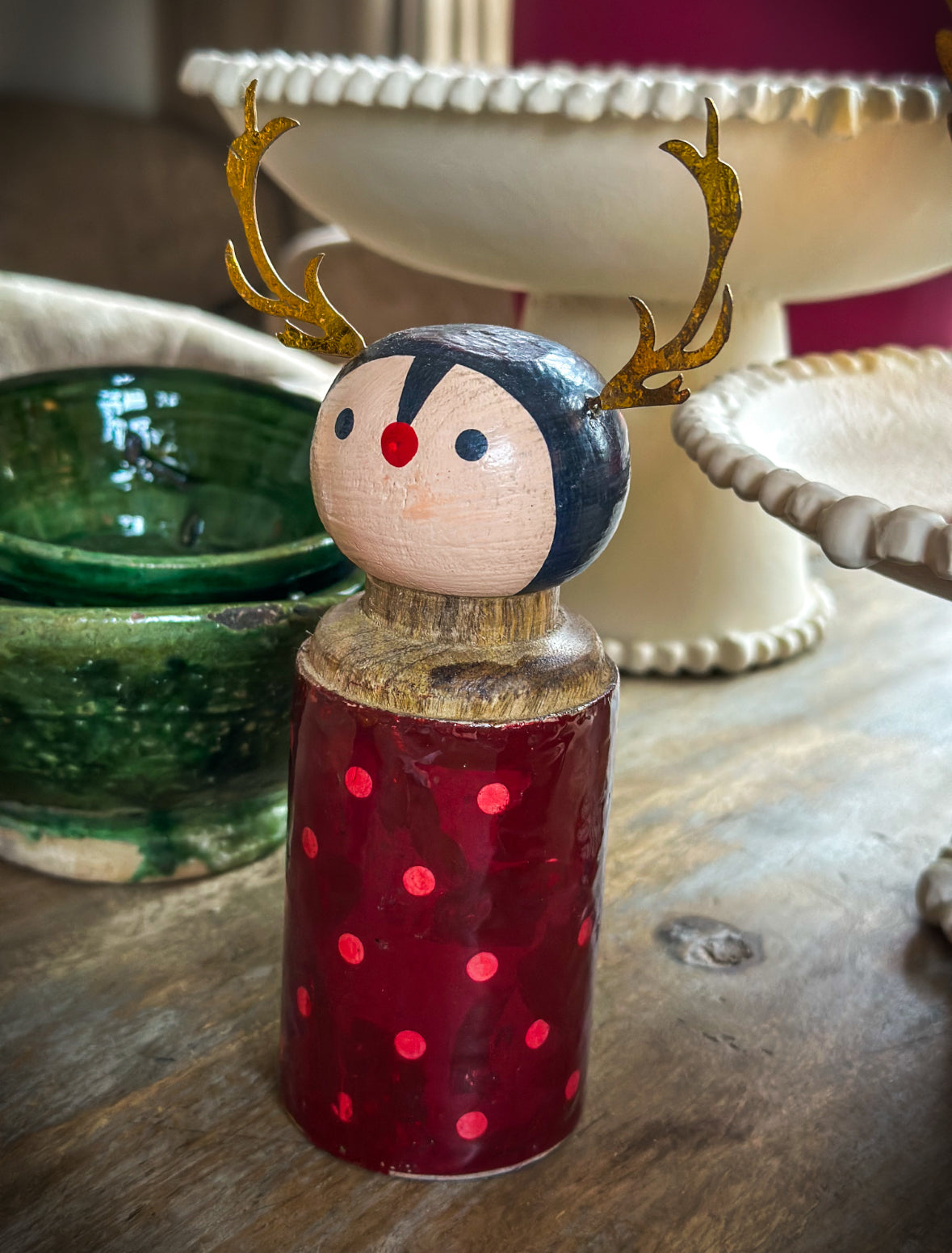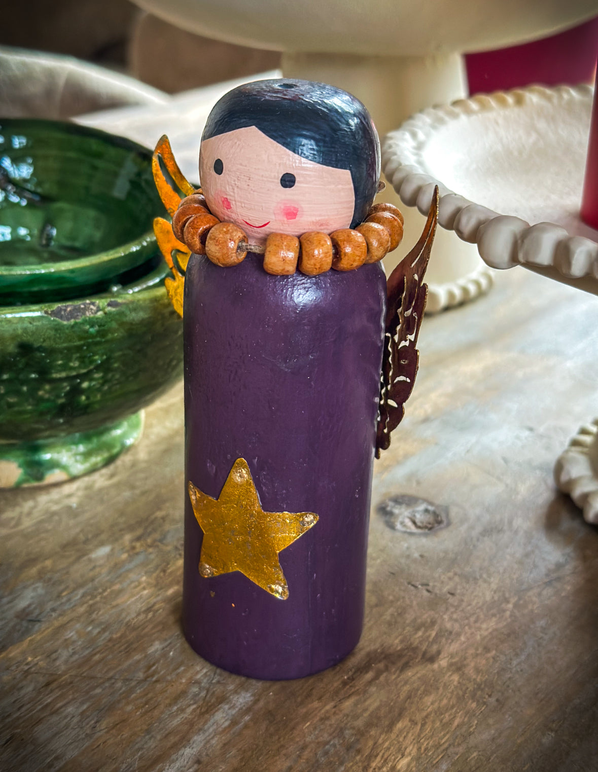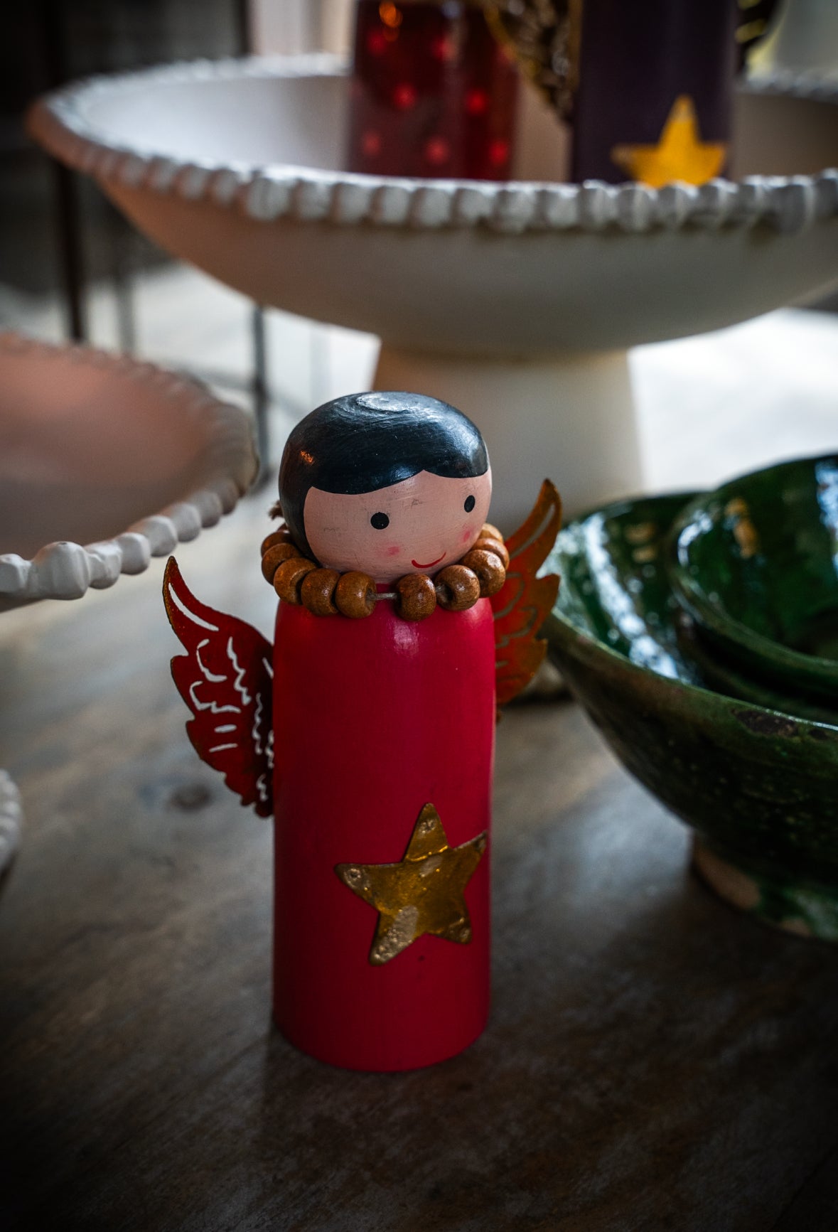 Breng warmte en magie in huis met deze handgemaakte houten kerstengeltjes en rendieren. Elk stuk is met zorg beschilderd en afgewerkt met fijne details zoals gouden sterren, vleugels en gewei. Perfect voor op tafel, dressoir of vensterbank en prachtig om samen te combineren voor een sprookjesachtig geheel dat je elk jaar weer kunt neerzetten.